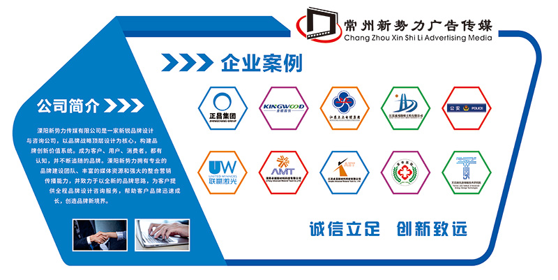 溧陽(yáng)新勢(shì)力廣告公司是一家集噴繪寫(xiě)真、平板UV打印、各類(lèi)門(mén)頭招牌、廣告燈箱制作、激光雕刻、標(biāo)識(shí)標(biāo)牌設(shè)計(jì)制作、大型戶(hù)外廣告牌施工;企業(yè)畫(huà)冊(cè)、產(chǎn)品樣本、手提袋、禮品袋、紙袋、包裝盒、彩盒、禮品盒、各類(lèi)不干膠標(biāo)簽、標(biāo)貼、產(chǎn)品說(shuō)明書(shū)、年歷、日歷、掛歷、臺(tái)歷等設(shè)計(jì)印刷;各類(lèi)展覽展示設(shè)計(jì)、展臺(tái)設(shè)計(jì)、展廳設(shè)計(jì)、展臺(tái)搭建、形象背景墻、文化墻設(shè)計(jì)制作、會(huì)議背景搭建、會(huì)場(chǎng)布置、會(huì)展服務(wù)等為一體的綜合性廣告公司。